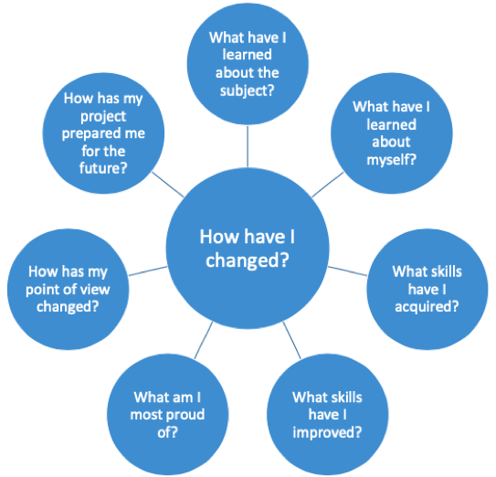 - could include ways in which the student has grown or changed as a result of the project.