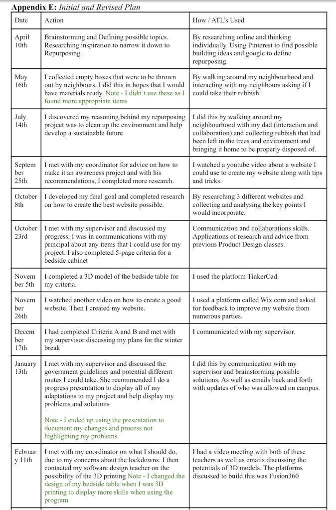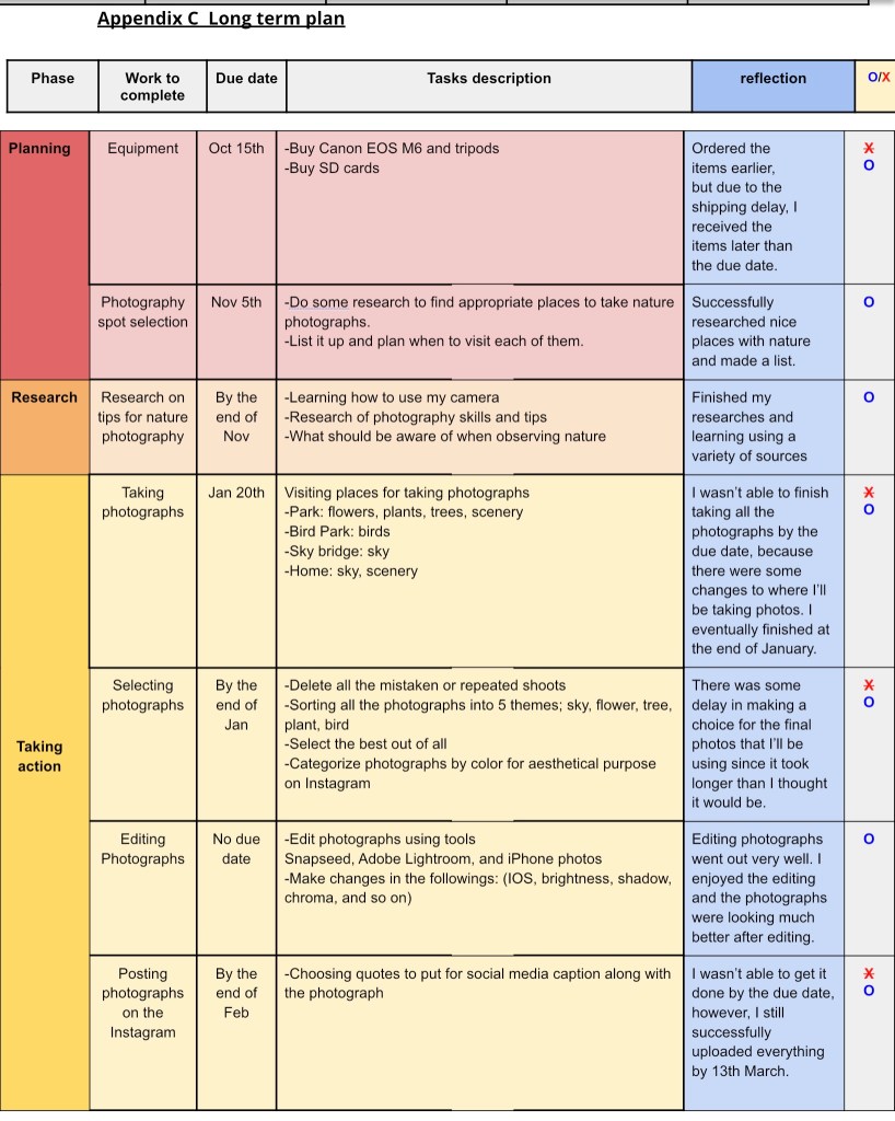 - specific dates, deadlines and clear records of adjustment to the project’s timeline.