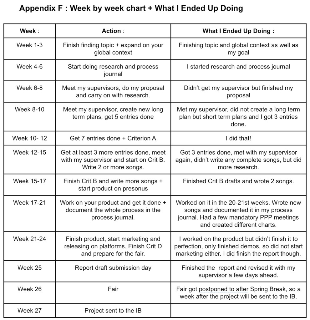 - a comprehensive account of the process from start to finish that corresponds closely to the plan