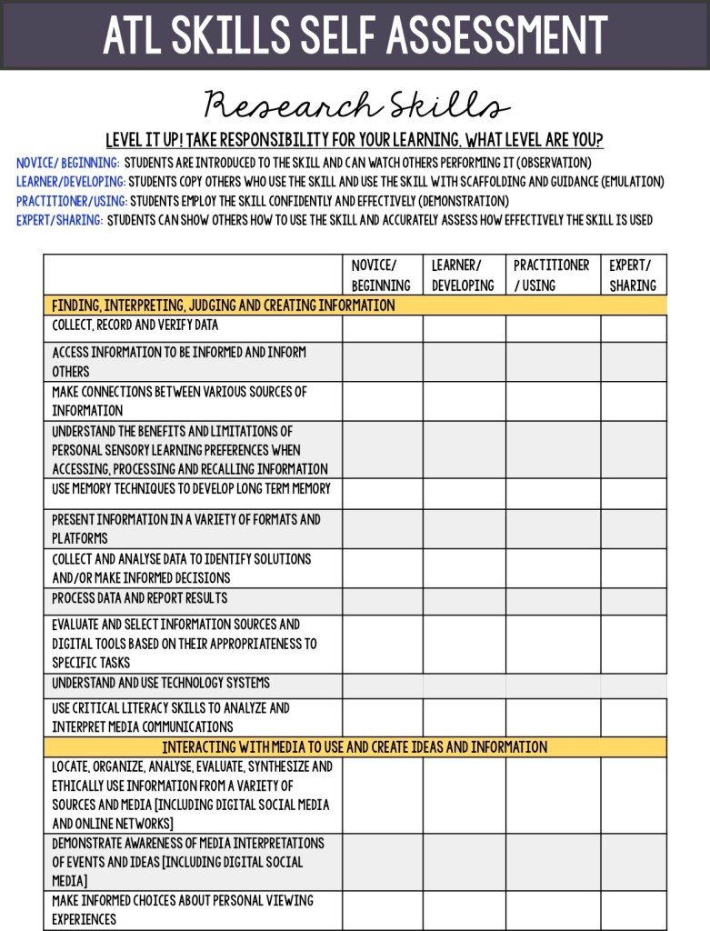 - Talk about the different research skills you developed/ used in the project (Use ATL for research skills to pull ideas from)