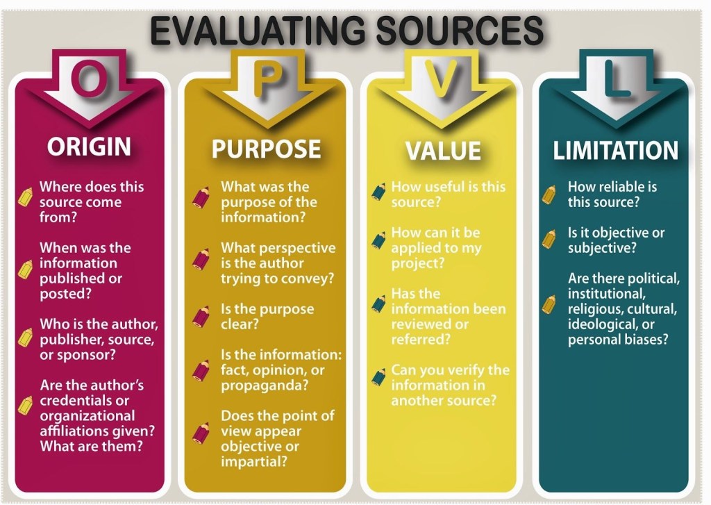- Evaluate some of your sources for reliability AND relevance (OPVL) – Make sure Bibliography is properly formatted