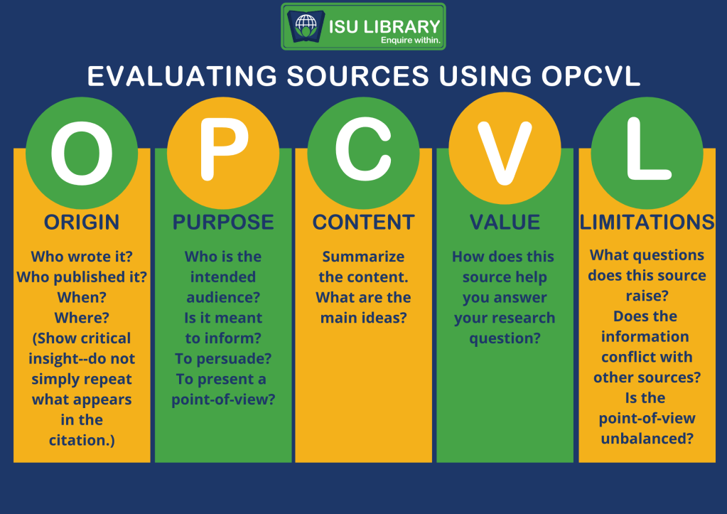 - Create the bibliography as you go, an Annotated Bibliography with an OPVL Analysis of Sources is Highly Recommended